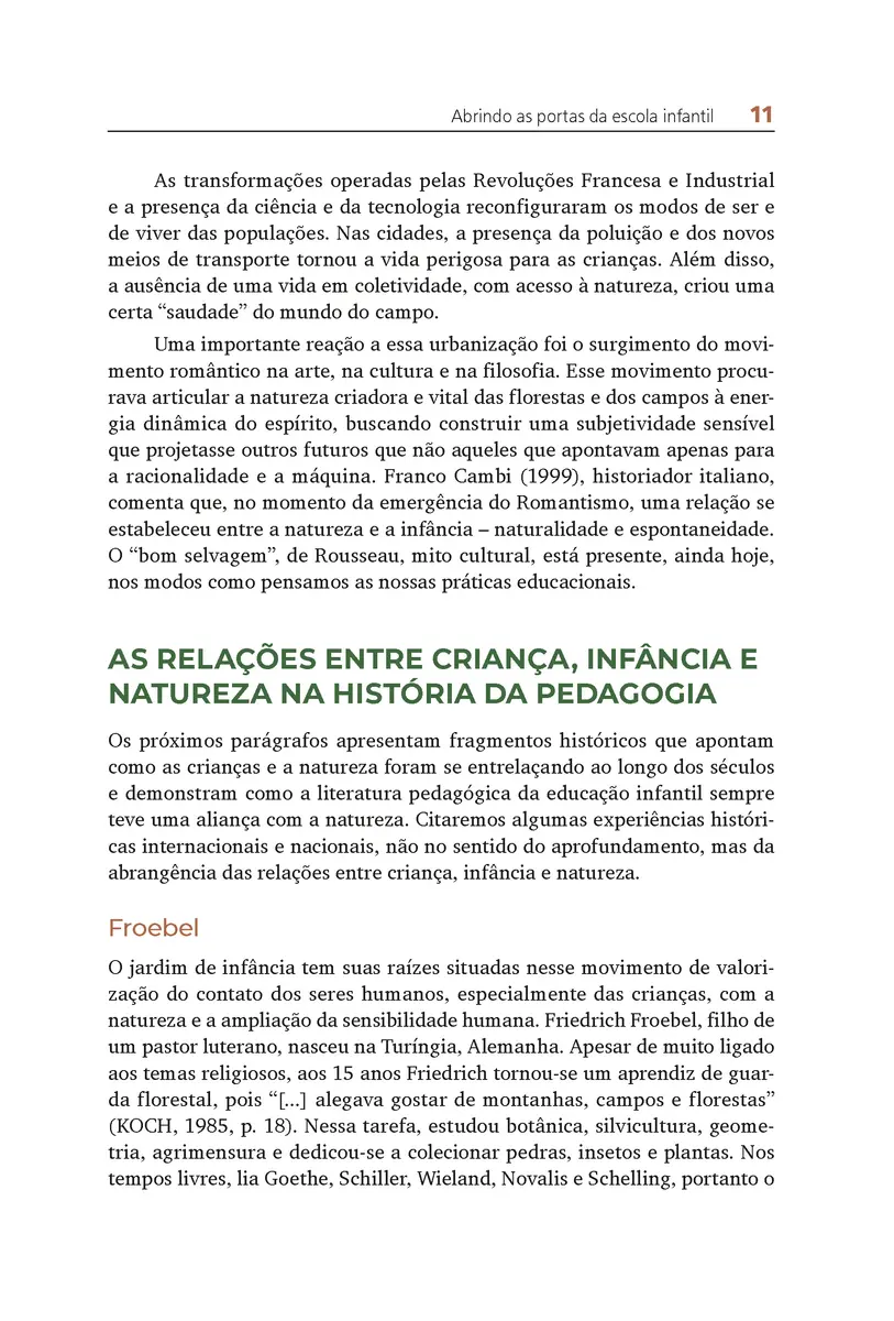 HORN, M. G. S. ; BARBOSA, M. C. S. Abrindo as portas da escola infantil: viver e aprender nos espaços externos. Porto Alegre: Penso, 2021.