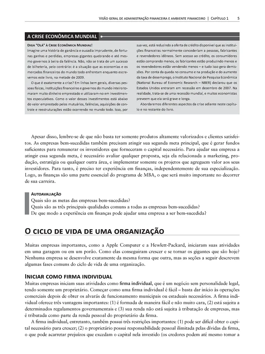 Finanças são, no sentido real, o pilar do sistema de gestão empresarial livre. Uma boa administração financeira tem importância vital para a saúde econômica das empresas, da nação e do mundo. Por isso, nesta obra, os autores se preocupam em fazer com que estudantes e administradores entendam o papel das finanças na economia global, em sua empresa e em sua vida. Como o próprio título sugere, Administração financeira: teoria e prática, combina teoria e aplicações práticas. Para isso, o texto começa com conceitos básicos, incluindo informações sobre o ambiente econômico e financeiro, demonstrações financeiras (com ênfase em fluxos de caixa), valor temporal do dinheiro, avaliação de títulos, análise de risco e avaliação de ações. Este livro ajuda os leitores a entender e a resolver os problemas enfrentados pelas empresas atualmente. Apresenta material atualizado, completo, com ênfase especial na atualização de exemplos reais e na inclusão das mudanças recentes no ambiente financeiro, especialmente da crise econômica mundial. É uma ferramenta indispensável para preparar os estudantes para um mundo diferente.