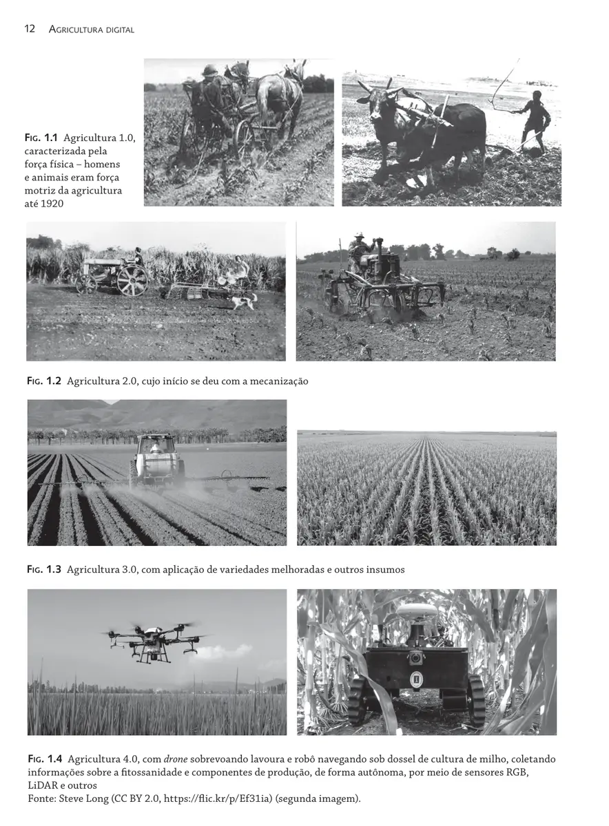 A Agricultura Digital, ou Agricultura 4.0, representa uma grande revolução verde, com profundas mudanças na organização da produção e uso eficiente dos recursos naturais e insumos, por meio de inovações como automação e robótica; sensores que monitoram o solo, a planta e o clima; processamento e armazenagem dos dados em nuvem e inteligência artificial. O livro Agricultura Digital explica os avanços da tecnologia da informação e suas implicações e possibilidades nessa revolução digital da agricultura. Apresenta os conceitos básicos sobre geotecnologias e geoprocessamento e sua aplicação no campo, utilização de drones e sensores na agricultura, irrigação e bovinocultura digital, automação de máquinas agrícolas, internet das coisas, computação em nuvem, big data e machine learning. O livro apresenta alguns dos principais aplicativos, plataformas e programas de computador empregados no campo e traz um glossário com termos importantes. Um estudo de caso real brasileiro da aplicação da agricultura digital em uma empresa agrícola reforça que a agricultura digital já chegou! Atualizado, didático e abrangente, esta 2ª edição do Agricultura Digital é um guia completo para as rápidas transformações em curso no campo e suas implicações na produção, coleta e análise de dados e na otimização de processos agrícolas.