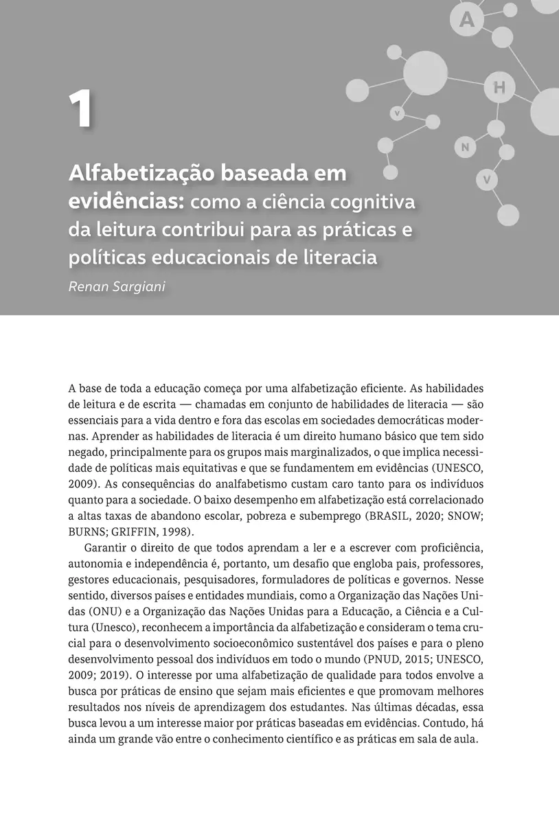 Da ciência da alfabetização à sala de aula! Tornar o conhecimento científico mais atualizado sobre a alfabetização acessível aos professores é fundamental para que possam aperfeiçoar suas práticas e garantir que todas as crianças aprendam a ler e a escrever. A partir dessa ideia, os autores, destacados professores e pesquisadores que acreditam na importância da alfabetização e da educação, apresentam, neste livro, capítulos ricos em informações, evidências, experiências e recomendações que auxiliarão professores e futuros professores a preencher as lacunas entre a ciência e a sala de aula.