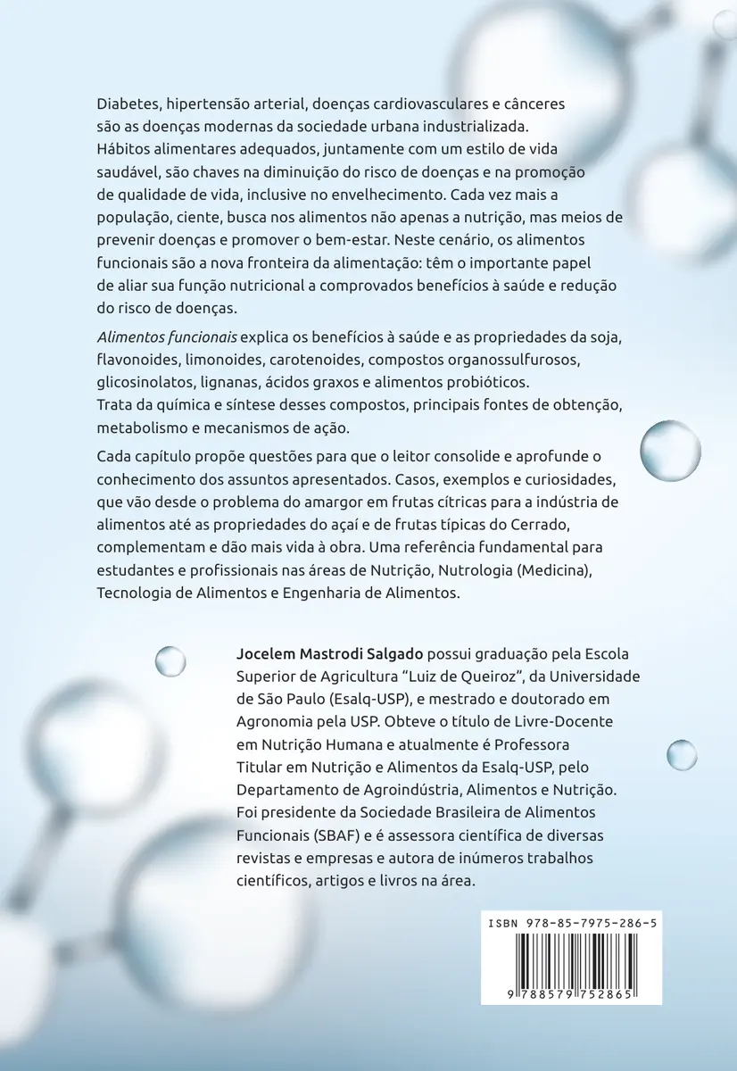 Apresenta alguns dos principais grupos de alimentos funcionais, como carotenoides, ácidos graxos, probióticos, limonoides, lignanas, glicosinatos e flavonoides. O livro alia uma sólida base científica a curiosidades e exemplos práticos para explicar o modo como esses alimentos atuam no corpo humano como antioxidantes ou antiinflamatórios e até mesmo no combate ao câncer, obesidade e doenças cardiovasculares.