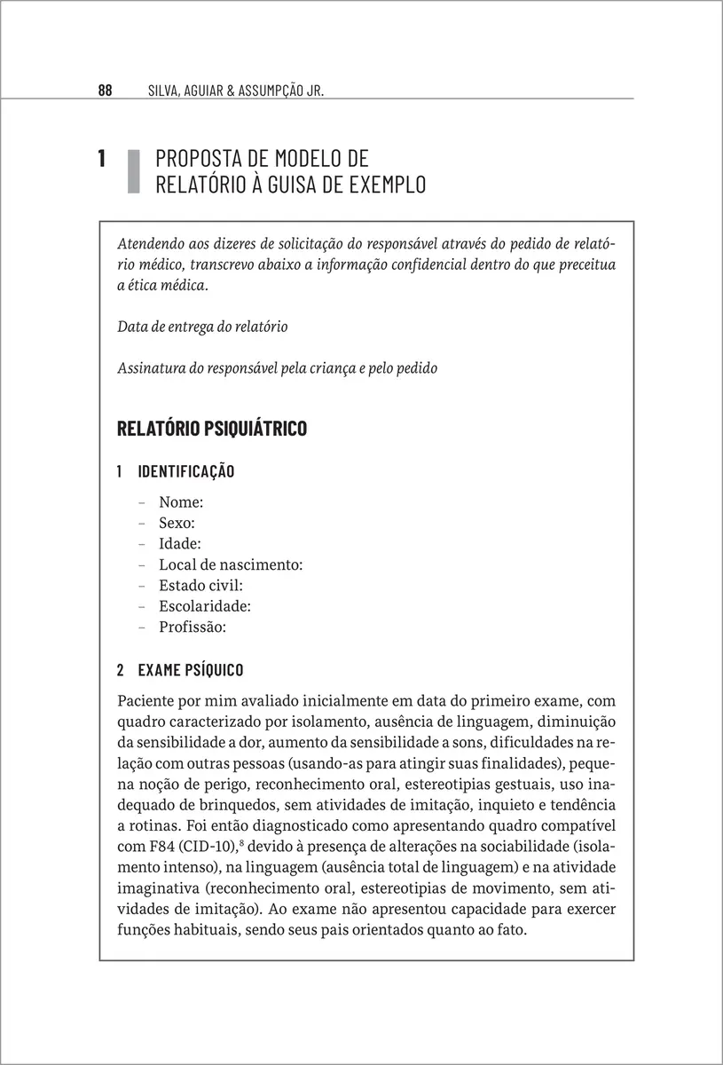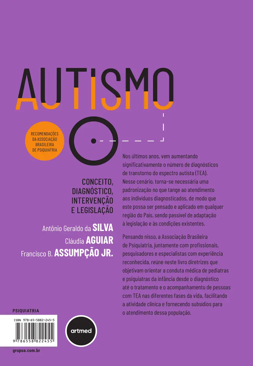 SILVIA, A. G.; AGUIAR, C.; ASSUMPÇÃO JR., F. B. Autismo: conceito, diagnóstico, intervenção e legislação. Porto Alegre: Artmed, 2024.