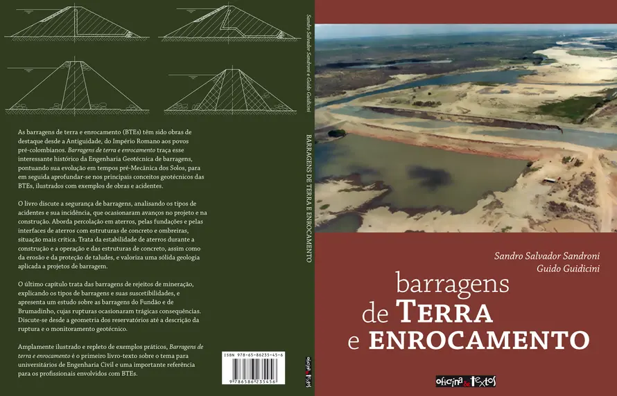 As barragens de terra e enrocamento (BTEs) têm sido obras de destaque desde a Antiguidade, do Império Romano aos povos pré-colombianos. Barragens de terra e enrocamento traça esse interessante histórico da Engenharia Geotécnica de barragens pontuando sua evolução em tempos pré Mecânica dos Solos, para em seguida aprofundar-se nos principais conceitos geotécnicos das BTEs, ilustrados com exemplos de obras e acidentes. O livro discute a segurança de barragens, analisando os tipos de acidentes e sua incidência, que ocasionaram avanços no projeto e construção. Aborda percolação em aterros, pelas fundações e pelas interfaces de aterros com estruturas de concreto e ombreiras, situação mais crítica. Trata da estabilidade de aterros durante a construção e operação e das estruturas de concreto, erosão e proteção de taludes e valoriza uma sólida geologia aplicada a projetos de barragem. O último capítulo de número 9 trata das barragens de rejeitos de mineração, explicando os tipos de barragens e suas suscetibilidades, e um estudo sobre as barragens do Fundão e de Brumadinho, cujas rupturas ocasionaram trágicas consequências. Discute-se desde a geometria dos reservatórios até a descrição da ruptura e o monitoramento geotécnico. Amplamente ilustrado e repleto de exemplos práticos, Barragens de terra e enrocamento é o primeiro livro texto sobre o tema para universitários de Engenharia Civil e uma importante referência para os profissionais envolvidos com BTEs.