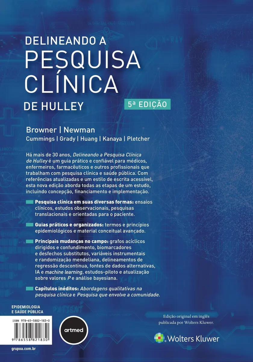 Há mais de 30 anos, Delineando a Pesquisa Clínica de Hulley é um guia prático e confiável para médicos, enfermeiros, farmacêuticos e outros profissionais que trabalham com pesquisa clínica e saúde pública. Com referências atualizadas e um estilo de escrita acessível, esta nova edição aborda todas as etapas de um estudo, incluindo concepção, financiamento e implementação