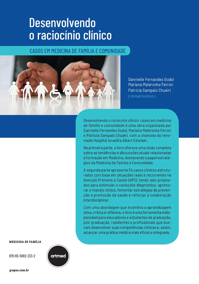 Desenvolvendo o raciocínio clínico: casos em medicina de família e comunidade é uma obra organizada por Dannielle Fernandes Godoi, Mariana Maleronka Ferron e Patricia Sampaio Chueiri, com a chancela do renomado Hospital Israelita Albert Einstein.
