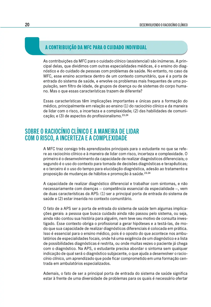 O livro Desenvolvendo o raciocínio clínico: Casos em medicina de família e comunidade é a primeira publicação brasileira do gênero com foco no apoio a docentes que atuam no ensino da atenção primária à saúde (APS), além de ser dirigido a estudantes e profissionais da área. Escrito por destacados profissionais do Instituto Israelita de Ensino e Pesquisa Albert Einstein, reúne 34 casos clínicos que abordam as condições mais prevalentes vistas na Atenção Primária à Saúde, possibilitando um processo de aprendizagem significativo e voltado para a transformação da prática clínica.