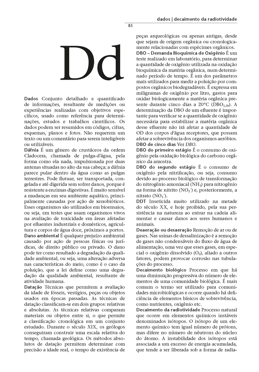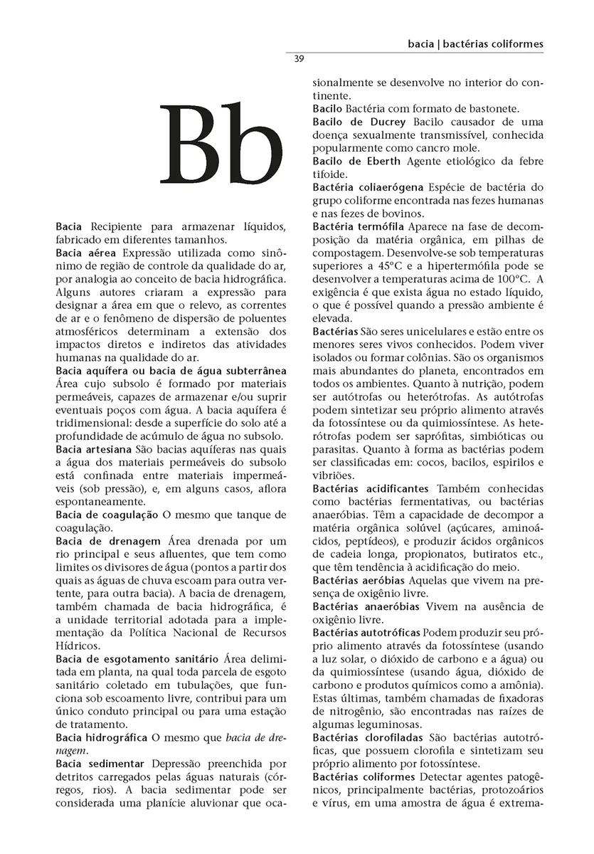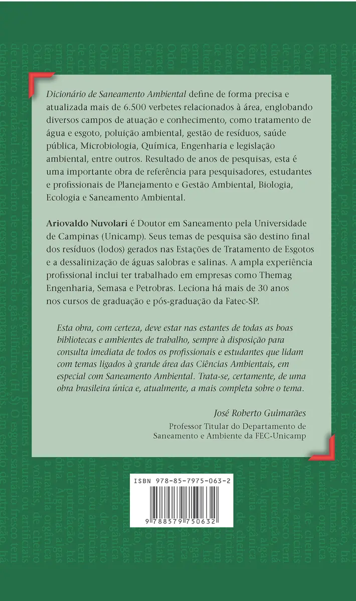 As palavras definidas no Dicionário de Saneamento Ambiental, a primeira obra do gênero em língua portuguesa, são termos atuais e não somente tecnocientíficos relacionados apenas com questões de saneamento ambiental – são definições precisas utilizadas em trabalhos que envolvem conhecimentos das diversas interfaces das Ciências Ambientais.