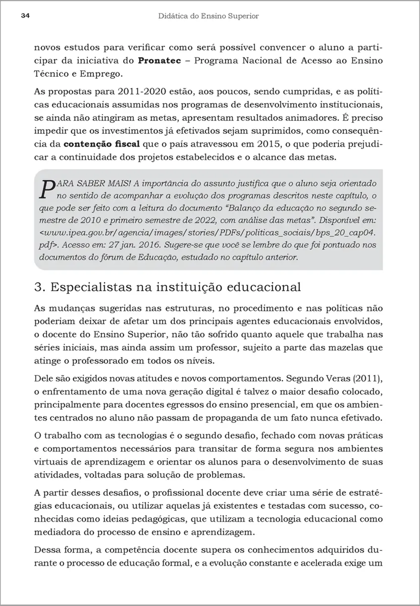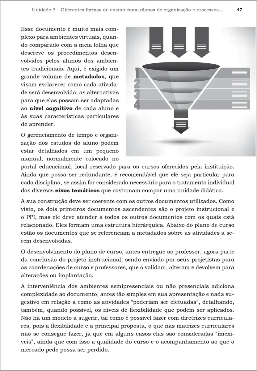 São abordadas ainda as diferentes formas de ensino como planos de organização e processos de interação, por meio da identificação e análise de estratégias de ensino, da natureza dos conteúdos e das formas de avaliação, em consonância com as características da clientela escolar.