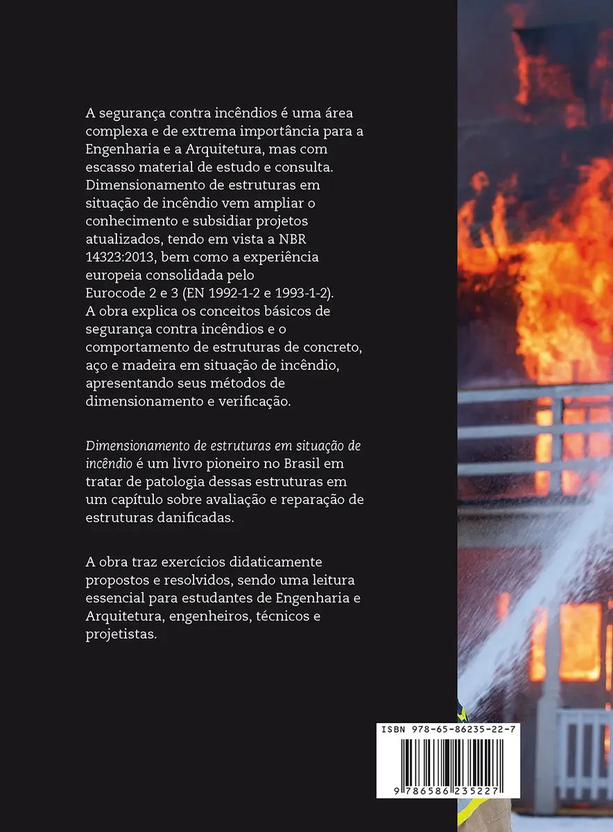 A segurança contra incêndios é uma área complexa e de extrema importância para a Engenharia e a Arquitetura, mas com escasso material de estudo e consulta. Dimensionamento de estruturas em situação de incêndio vem ampliar o conhecimento e subsidiar projetos atualizados, tendo em vista a NBR 14323:2013, bem como a experiência europeia consolidada pelo Eurocode 2 e 3 (EN 1992-1-2 e 1993-1-2). A obra explica os conceitos básicos de segurança contra incêndios e o comportamento de estruturas de concreto, aço e madeira em situação de incêndio, apresentando seus métodos de dimensionamento e verificação. Dimensionamento de estruturas em situação de incêndio é um livro pioneiro no Brasil em tratar de patologia dessas estruturas em um capítulo sobre avaliação e reparação de estruturas danificadas. A obra traz exercícios didaticamente propostos e resolvidos, sendo uma leitura essencial para estudantes de Engenharia e Arquitetura, engenheiros, técnicos e projetistas.