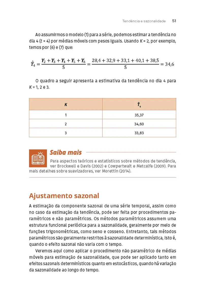 A análise de séries temporais é uma ferramenta que permite realizar previsões de dados quantitativos para períodos futuros. Dessa forma, pode ser utilizada nas mais diversas áreas da ciência. Neste livro, você verá conceitos com foco na resolução de problemas e na construção de uma base teórica sólida para a análise de dados sem se descuidar das aplicações. Nos capítulos iniciais, são apresentadas considerações gerais sobre séries temporais, suas características e modelos existentes. Na sequência, serão discutidas situações aplicadas ou relacionadas a cada um dos modelos, bem como serão estudados tendências e sazonalidade e exemplos de modelos estacionários e não estacionários. Por fim, os últimos capítulos se dedicam ao estudo da identificação, da estimação, do diagnóstico e da previsão de modelos Arima.