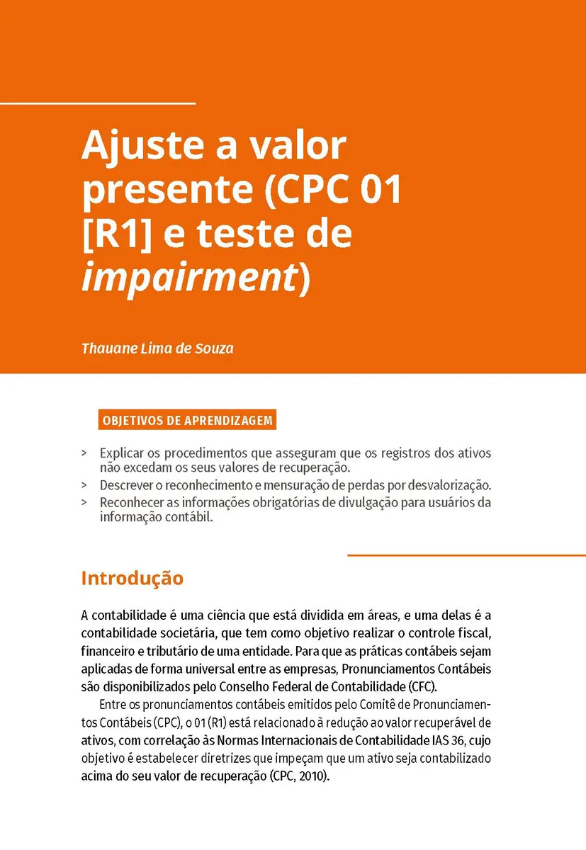 Ajuste a valor presente (CPC 01 [R1] e teste de impairment)