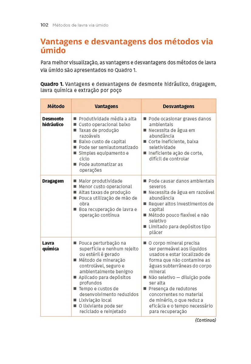 Métodos de lavra via úmido