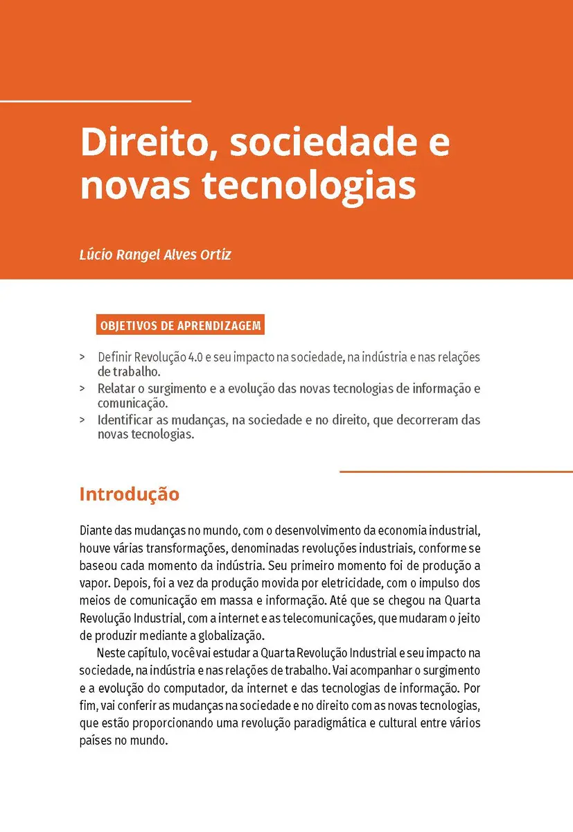 Os avanços tecnológicos têm ocorrido cada vez mais rapidamente, o que impõe ao Estado e ao direito a necessidade de se adaptar, tanto que já se percebem legislações aproximando o direito das novas demandas tecnológicas sociais. Temos como exemplo a Lei Geral de Proteção de Dados Pessoais (LGPD) — Lei nº 13.709, de 14 de agosto de 2018 —, que aborda o respeito à privacidade, a autodeterminação informativa, a liberdade de expressão e o respeito aos direitos humanos. Neste livro, vamos abordar o reconhecimento do direito digital como área especializada, identificando o tratamento jurídico de questões relacionadas à informática e sua confluência com outros ramos do direito. Entre outros temas, você vai refletir sobre direito do consumidor no meio eletrônico, responsabilidade civil dos provedores, monitoramento eletrônico, crimes contra a honra e estelionato eletrônico, contratos eletrônicos e valor probante das provas obtidas no meio eletrônico.