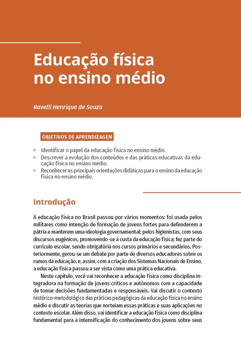PAZ, B. et al. Educação física no ensino médio: prática docente. Porto Alegre: SAGAH, 2021.