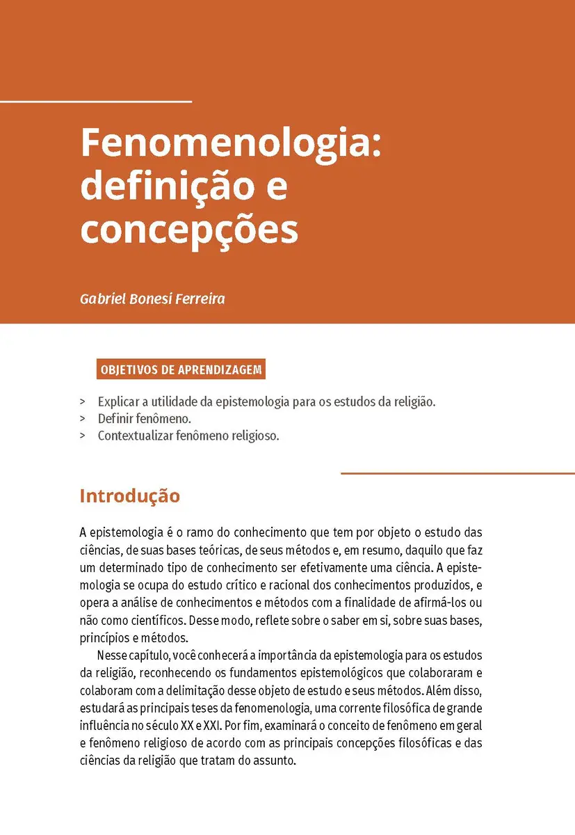 FERREIRA, G. B. et al. Epistemologia do fenômeno religioso. Porto Alegre: SAGAH, 2021.