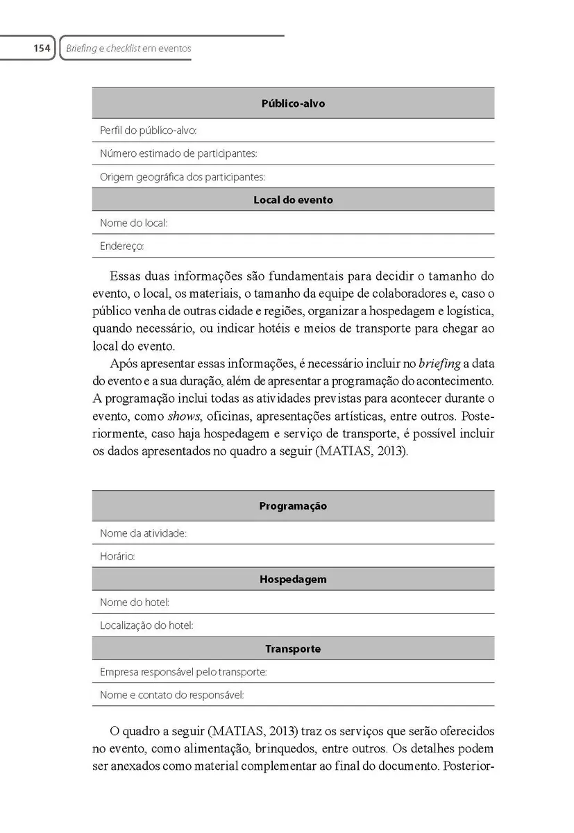 Briefing e checklist em eventos