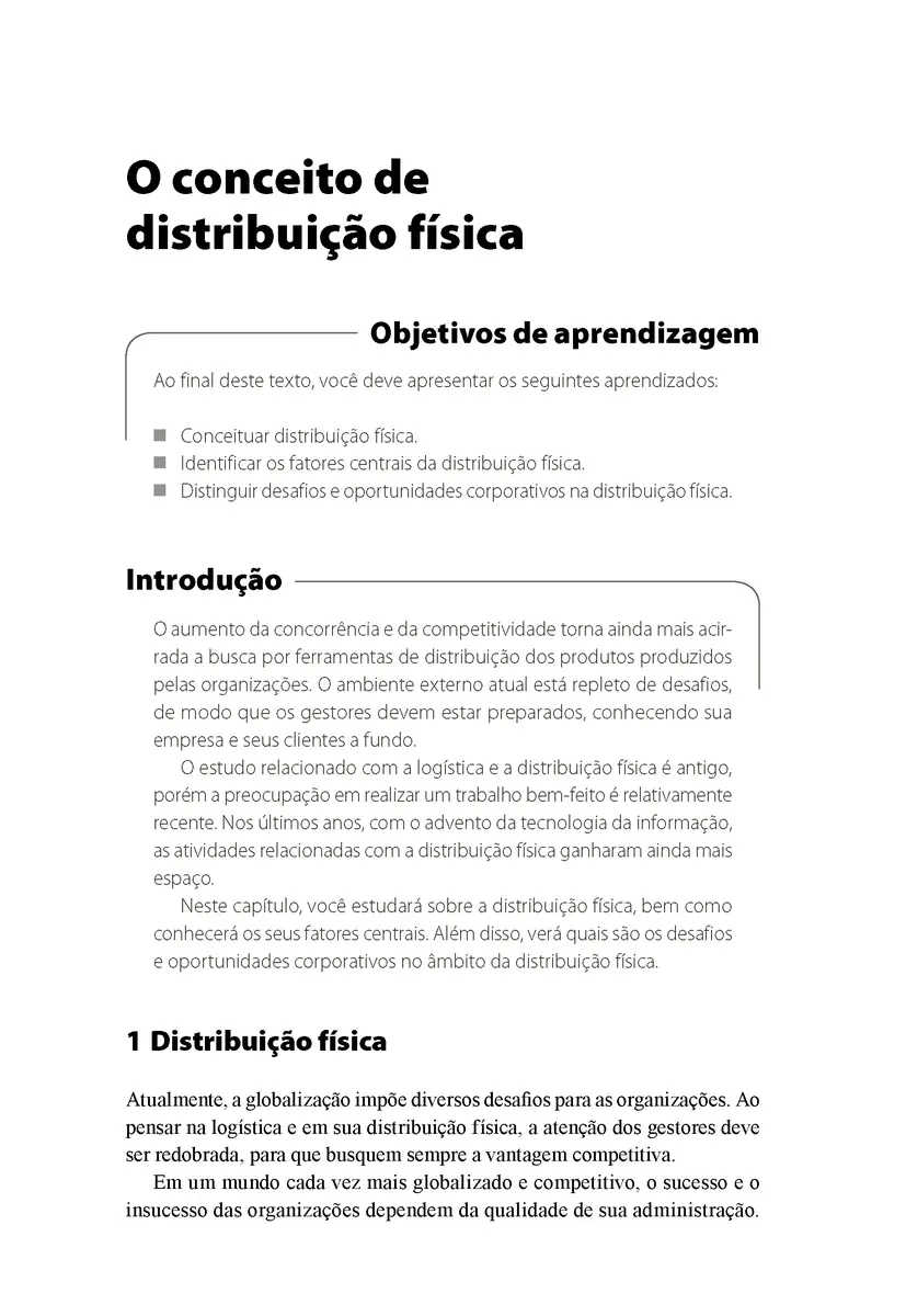 A globalização tornou a busca por ferramentas tecnológicas que reduzem a distância entre organizações e clientes uma necessidade. Dessa forma, novos modelos de cadeias de suprimentos foram implementados, e, com isso, a gestão da distribuição física passou a ser fator central, ao possibilitar que a organização se diferencie e atenda com variedade, eficiência e qualidade. Neste livro, portanto, você estudará conceitos e etapas que envolvem a gestão da distribuição física.