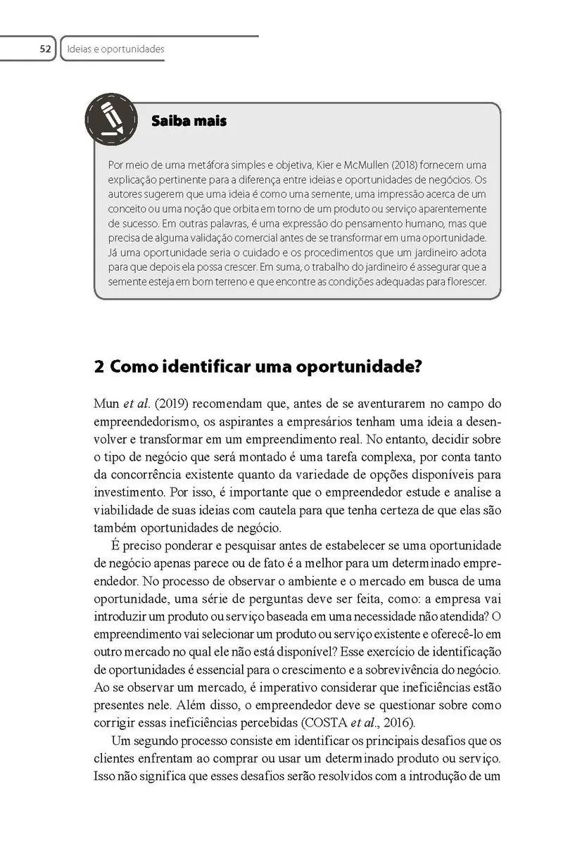 SOUZA, A. C. A. A.; et al. Identificação e análise de oportunidades nacionais e internacionais. Porto Alegre: Sagah, 2020.