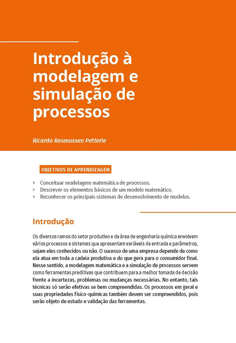 Identificar o comportamento dos processos químicos é fundamental tanto para o desenho quanto para o controle de processos. Por meio de modelagem e simulação, é possível realizar estudos relacionados ao comportamento dos sistemas. Atualmente, os modelos computacionais, se realizados de forma robusta, podem fornecer informações importantes referentes aos processos. Para que sejam possíveis a modelagem e a simulação dos processos químicos, porém, é importante a revisão de conceitos básicos da engenharia, como balanço de massa, energia e movimento, além dos principais métodos numéricos utilizados como ferramentas para uma eficiente modelagem matemática.