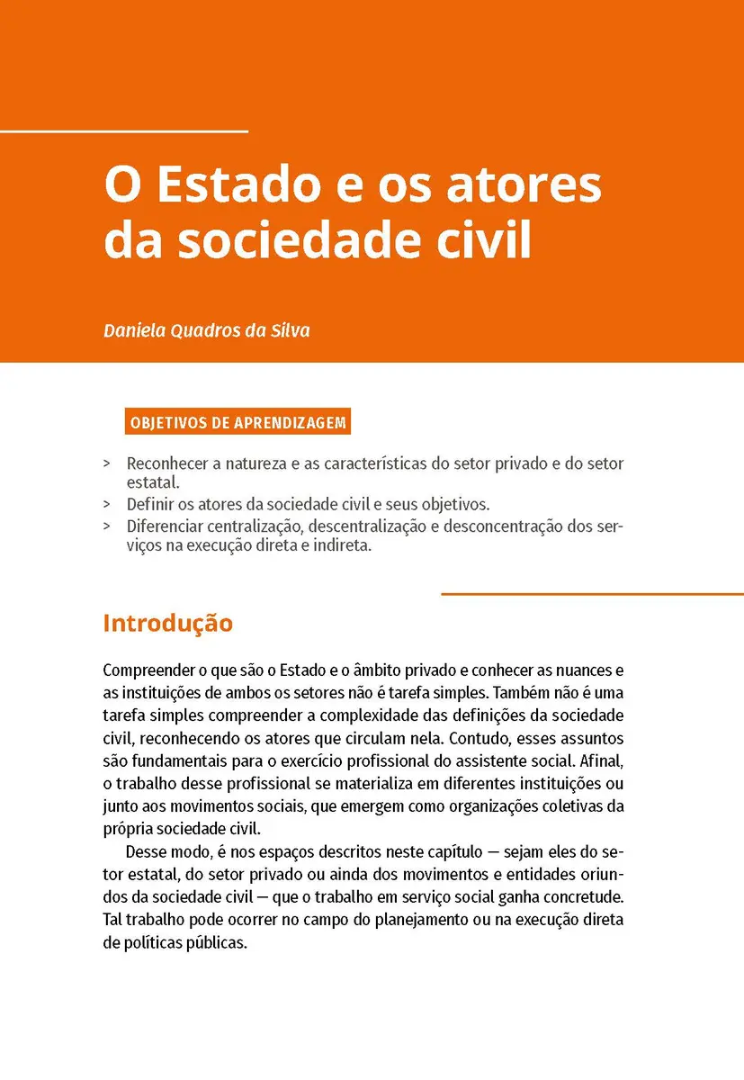 O objetivo desta obra é preparar o futuro profissional para a realidade do mercado das organizações, mas reconhecendo o movimento histórico e contraditório da sociedade capitalista na qual estamos inseridos. Para isso, são debatidas as novas estratégias de inserção profissional no mercado de trabalho e as novas configurações trabalhistas, com destaque para o processo de trabalho do assistente social nas organizações de todas as ordens. A partir da concepção de Estado e setor privado, bem como da caracterização e da natureza de cada uma dessas esferas, este livro problematiza a atuação do assistente social tanto em instituições públicas e privadas quanto como profissional autônomo.