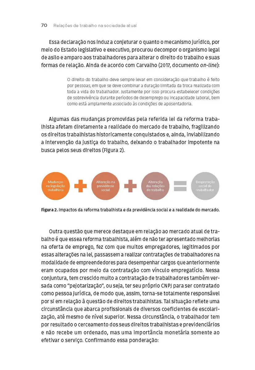 As transformações societárias estão cada dia mais aceleradas. Isso não significa, porém, que essas transformações sejam positivas e benevolentes com a classe trabalhadora. Nessa classe, incluem-se, também, os assistentes sociais, que estão inseridos na divisão sociotécnica do trabalho. Esses profissionais, assim, precisam reconhecer a realidade na qual estão imersos e gerir meios e estratégias de inserção profissional e valoração da sua atuação perante a sociedade. Urge, então, trazermos à tona o debate acerca de temas tão presentes no interior da categoria profissional, pois as relações de trabalho, fragilizadas pelo contexto social, econômico e político, afetam todas as profissões. Nessa lógica, é fundamental o aprofundamento dos estudos sobre o processo de trabalho do assistente social, considerando as transformações na legislação trabalhista, a desregulamentação de direitos sociais, as medidas de cortes constantes de “gastos públicos” e as possibilidades de ocupação de novas frentes de atuação profissional de forma consciente.