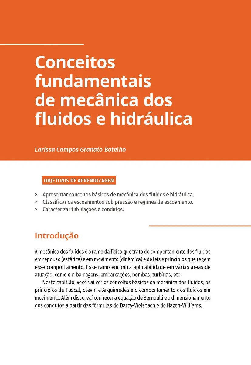 Conceitos fundamentais de mecânica dos fluidos e hidráulica