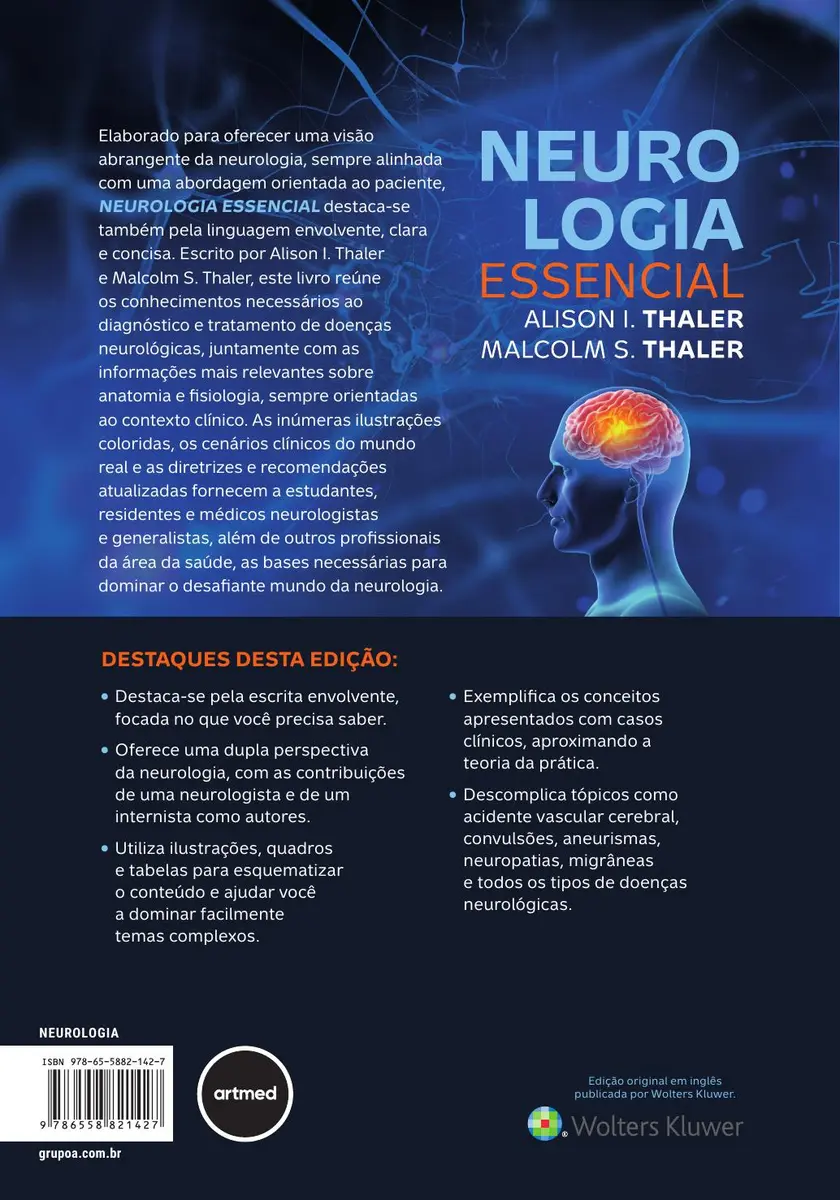 Neurologia essencial traz uma visão abrangente da especialidade, sempre alinhada com uma abordagem orientada ao paciente, destacando-se também pela linguagem envolvente, clara e concisa. Escrito por Alison I. Thaler e Malcolm S. Thaler, este livro reúne os conhecimentos necessários ao diagnóstico e tratamento de doenças neurológicas, juntamente com as informações mais relevantes sobre anatomia e fisiologia, sempre orientadas ao contexto clínico. As inúmeras ilustrações coloridas, os cenários clínicos do mundo real e as diretrizes e recomendações atualizadas fornecem a estudantes, residentes e médicos neurologistas e generalistas, além de outros profissionais da área da saúde, as bases necessárias para dominar o desafiante mundo da neurologia.