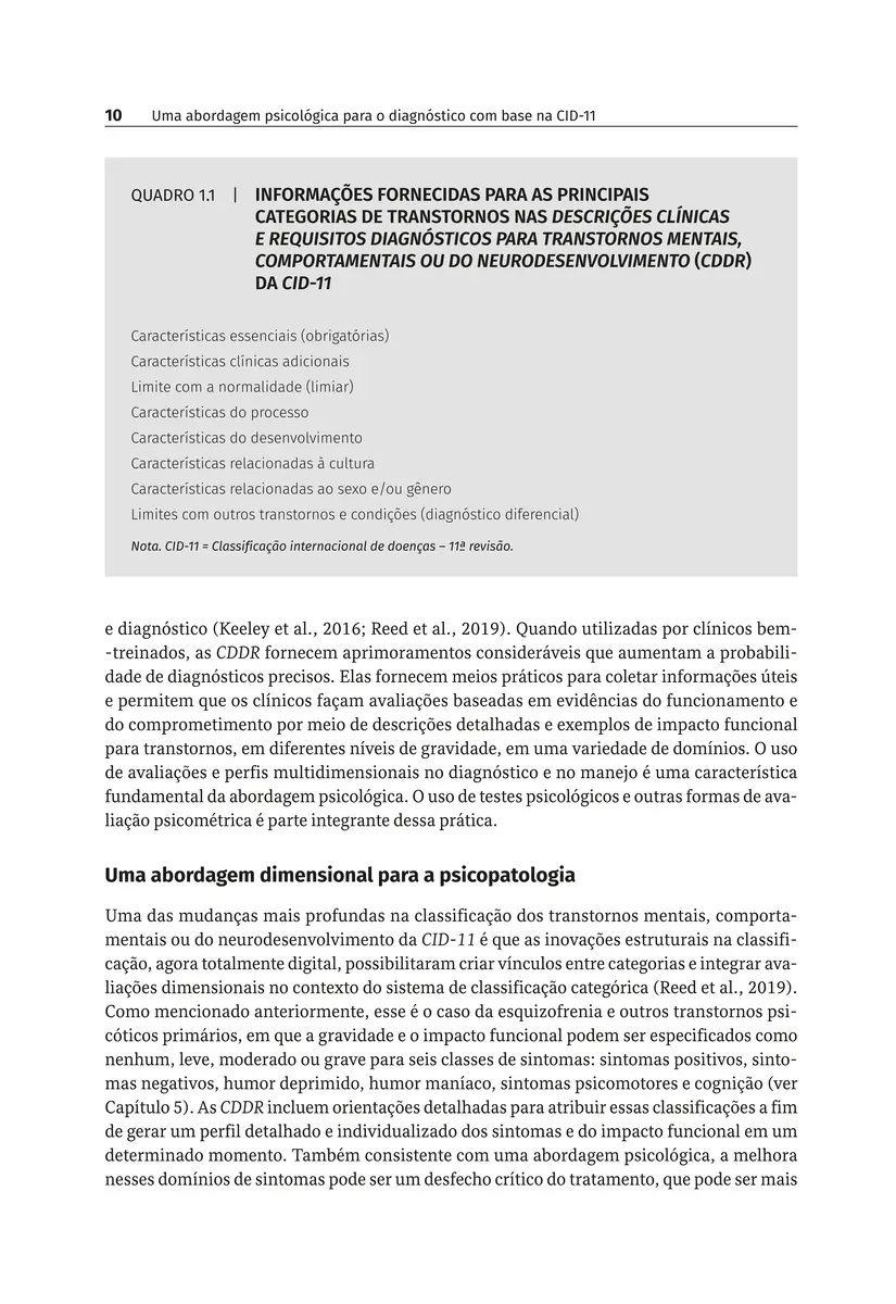 Abordando os transtornos mentais, comportamentais ou do neurodesenvolvimento com base na CID-11, este livro inclui tópicos como comprometimento, funcionamento, avaliação, abordagem desenvolvimentista, terminologia, metodologias de pesquisa e outros aspectos importantes da prática psicológica.