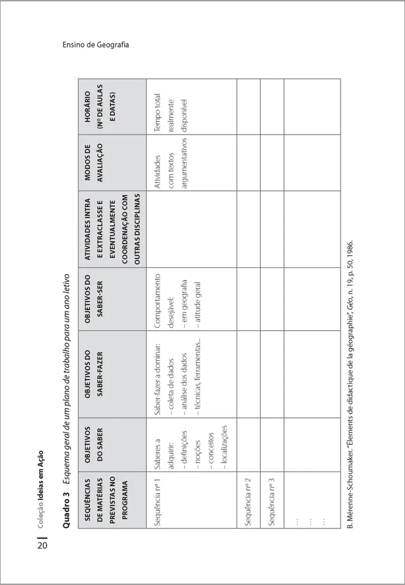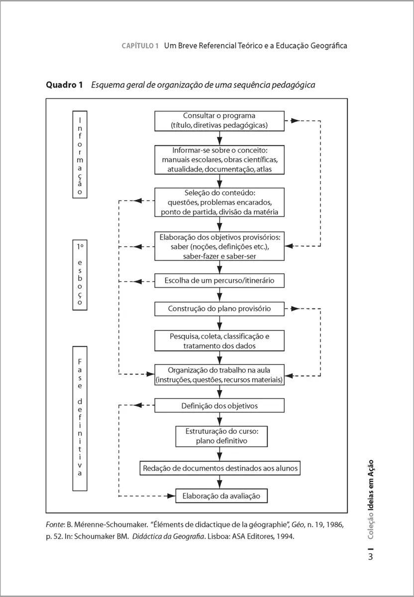 Quarto título da Coleção Ideias em Ação, Ensino de Geografica é um livro de metodologia do ensino que se caracteriza pela tônica de mudanças nos posicionamentos em relação às atuais concepções teóroco-metodológicas da ciência geográfica e das relativas à aprendizagem. Nesse sentido, a obra tem como um dos seus objetivos propor situações no ensino de geografica. As autoras sugerem a contrução de ideias em outras perspectiva, o que significa ressaltar um processo de aprendizagem que seja construído com base no conhecimento prévio, nos conceitos científicos e na realidade, proporcionando um novo olhar sobre a geografia escolar.