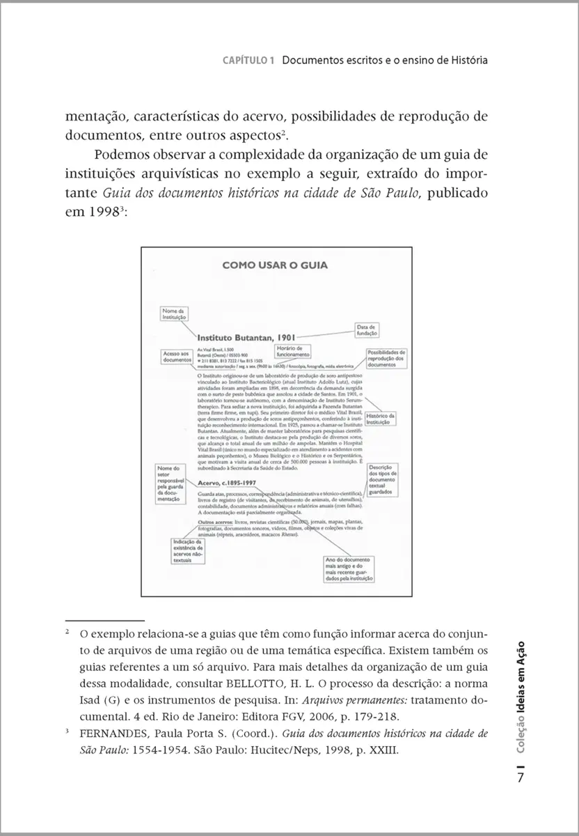 Esta obra surgiu a partir da experiência adquirida por seus autores em cursos dedicados à formação e ao aprimoramento de professores de História do Ensino Básico. O contato e a troca de experiências com esses profissionais levaram ao desenvolvimentode um conjunto de dez capítulos, nos quais os profissionais do ensino terão acesso a sugestões de atividades didáticas ou miniprojetos, a partir da utilização de diferentes documentos e suportes materiais, como o documento escrito, o texto literário, as imagens fixas ou em movimento, o patrimônio histórico e mapas. Todas as atividades podem ser adaptadas para as condições locais de cada escola e trazem recomendações quanto à sua adequação para as diferentes faixas etárias dos alunos, de acordo com os processos de aprendizagem próprios de cada idade, o que representa uma inovação necessária para um país do tamanho do Brasil e suas inúmeras realidades. A obra apresenta ainda sugestões de leitura para os que desejam se aprofundar nas diferentes temáticas, estudando-as de maneiras variadas.