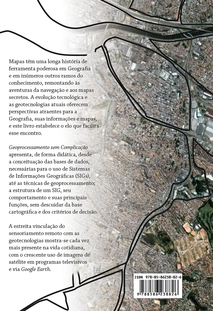 Geoprocessamento sem Complicação atende à crescente popularização do sensoriamento remoto para aquisição de dados por meio das imagens de satélite, em programas televisivos e via Google Earth. Mostra desde a conceituação das bases de dados para a construção de Sistemas de Informações Geográficas (SIGs), a estrutura de um SIG, seu comportamento e suas principais funções, até as técnicas de geoprocessamento, sem descuidar da base cartográfica e dos critérios de decisão que alimentam o processamento.