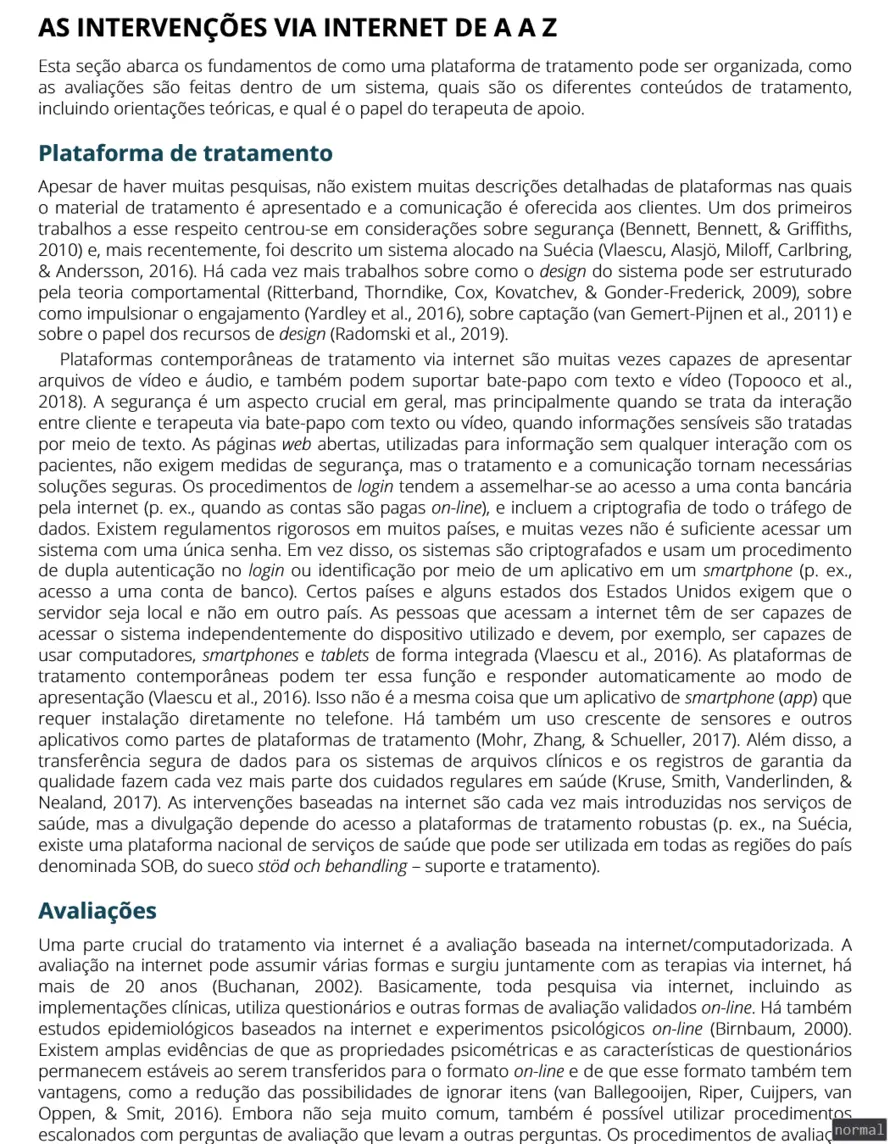 NEUFELD, C. B., SZUPZYNSKI, K. P. D. R. (org.). Intervenções on-line e terapias cognitivo-comportamentais. Porto Alegre: Artmed, 2022.