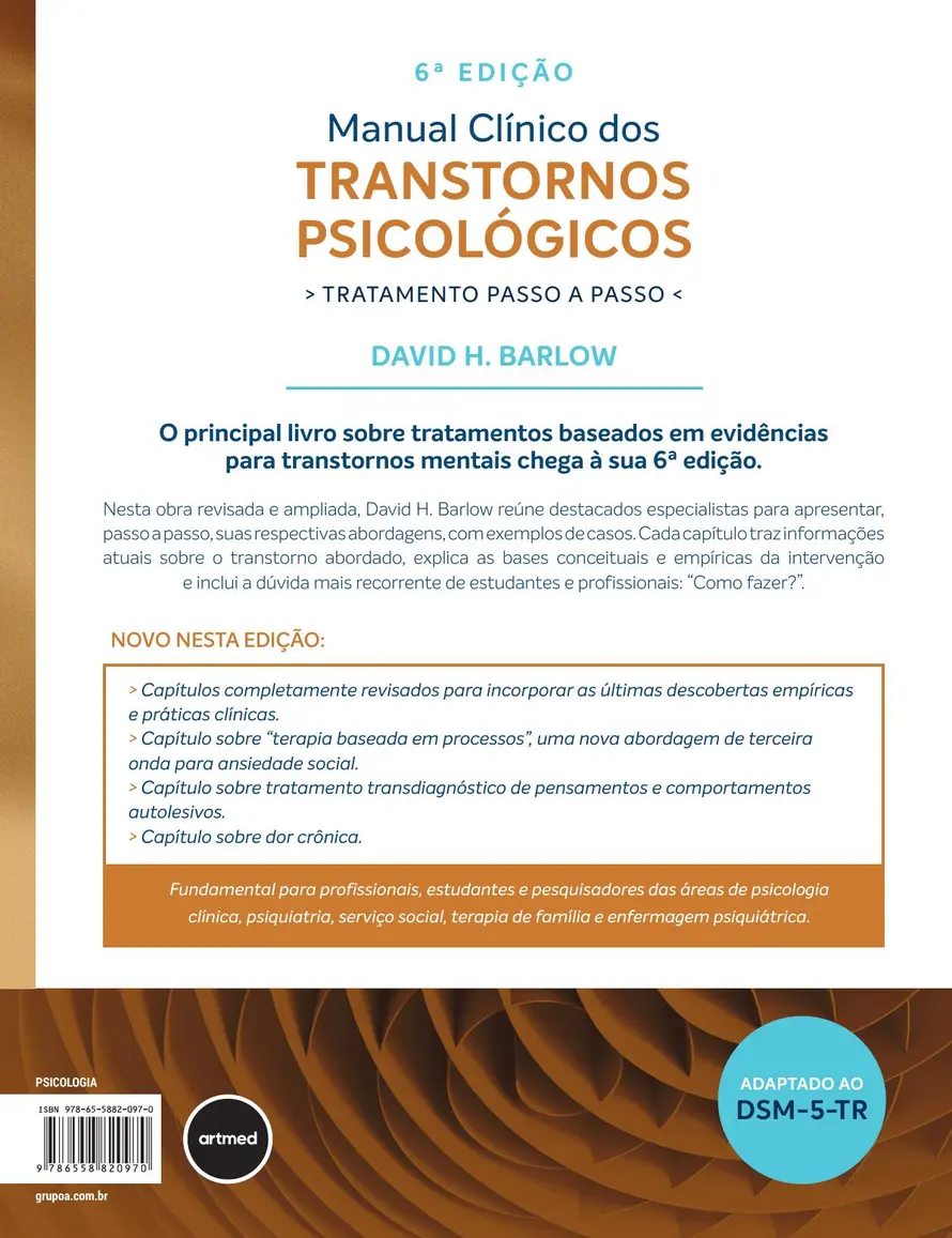 BARLOW, D. H. Manual clínico dos transtornos psicológicos: tratamento passo a passo. 6. ed. Porto Alegre: Artmed, 2023.