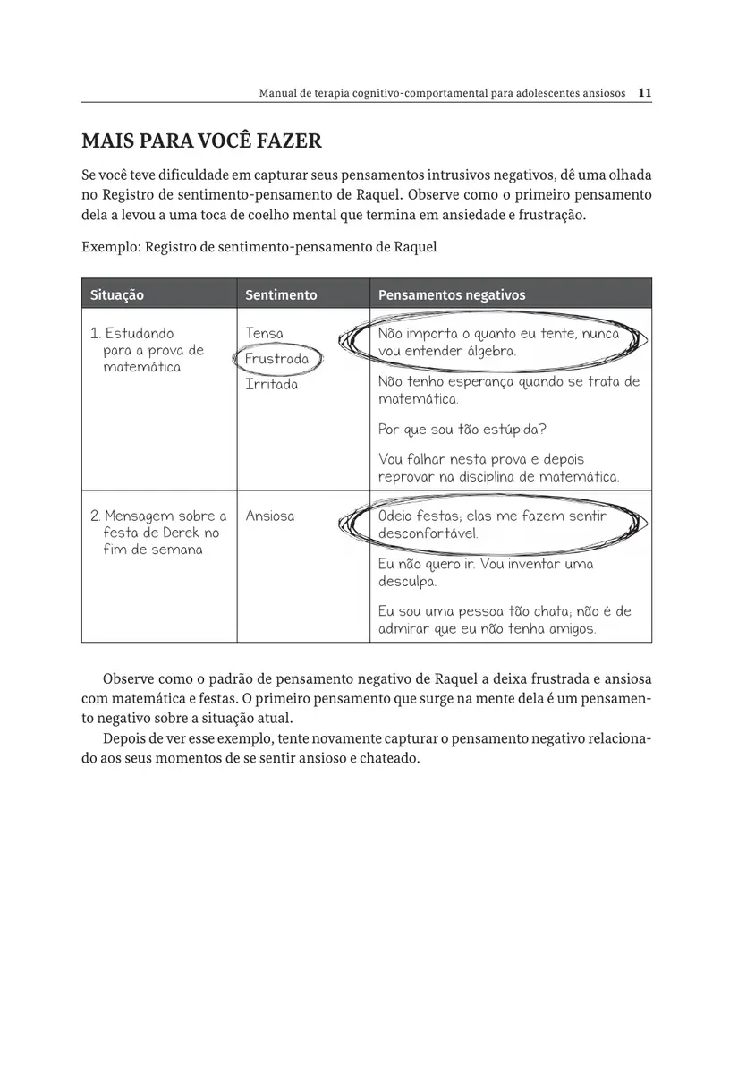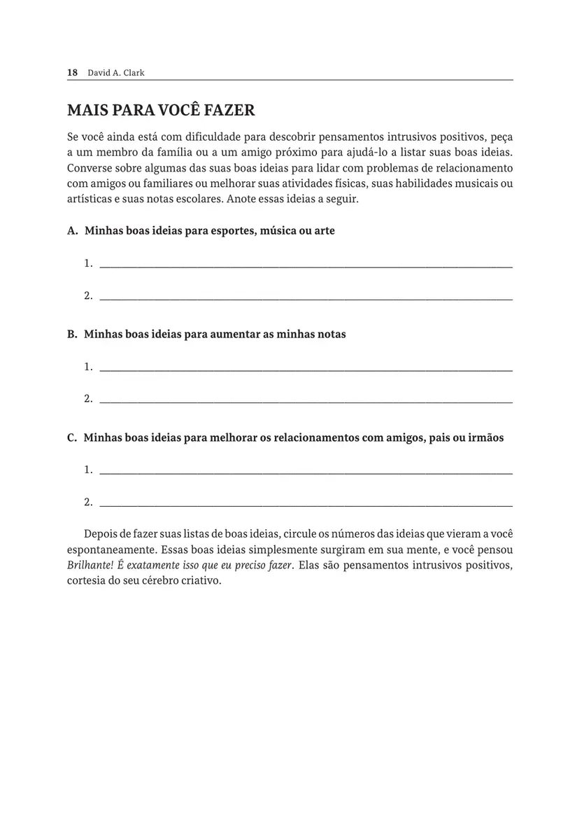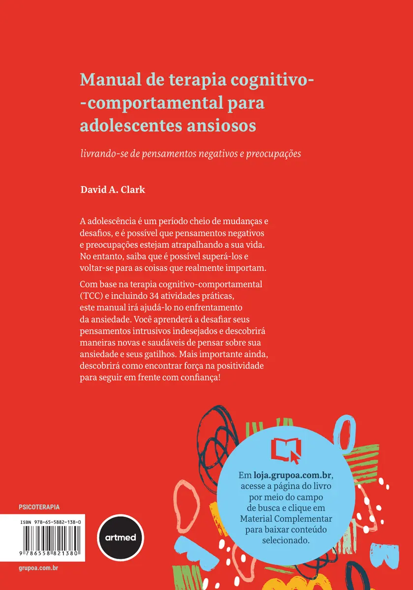 CLARK, D. A. Manual de terapia cognitivo-comportamental para adolescentes ansiosos: livrando-se de pensamentos negativos e preocupações. Porto Alegre: Artmed, 2023.
