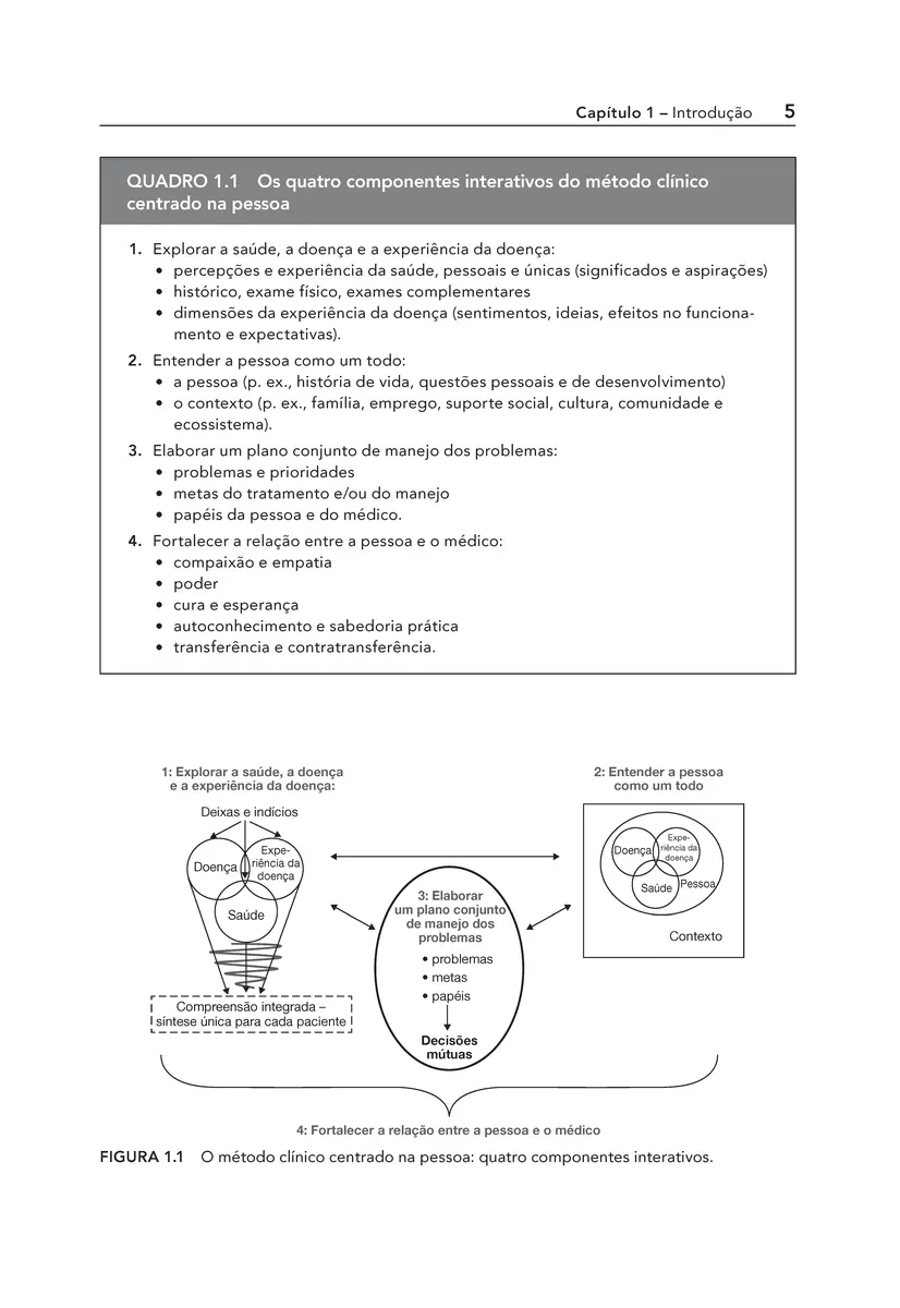 O método clínico centrado na pessoa (MCCP) permanece um princípio fundamental na prática e no ensino da medicina desde a 1ª edição deste livro, em 1995. Esta 4ª edição consolida os pilares do MCCP, atualizando sua evolução e relevância em meio aos novos desafios dos cuidados em saúde: um mundo onde o atendimento virtual permanecerá comum, com uma dependência crescente da tecnologia, e uma sociedade em constante mudança que nos afasta da compaixão, da igualdade e das relações e nos aproxima dos confrontos, da desigualdade e do autofoco.