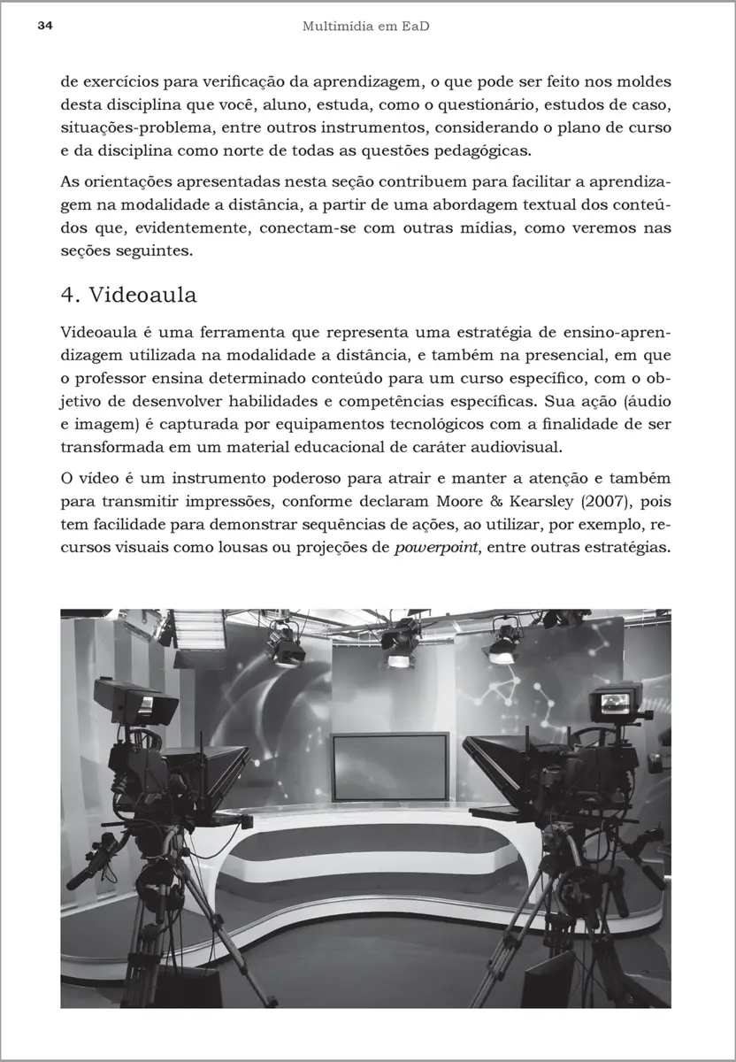 O Livro Apresenta Uma Abordagem Inovadora Para O Estudo De Multimídia, Abordando O Tratamento Do Som (Gravação, Armazenamento E Reprodução Do Som No Computador) E De Imagem (Gravação, Armazenamento E Reprodução De Fotos E Outros Tipos De Imagem). Nessa Obra Iremos Conhecer Como Deve Ser O Planejamento Para Utilização De Mídias Em Ead, As Necessidades Para Escrever Roteiros De Materiais Didáticos Fazendo Uso De: Videoaula; Teleconferência; Aulas On-Line; Videoconferência E Webconferências. Indica-Se Ainda O Processo Para A Elaboração E Consolidação Dos Itens Necessários Para A Composição De Pré-Roteiros E Roteiros De Materiais Didáticos Da Ead.