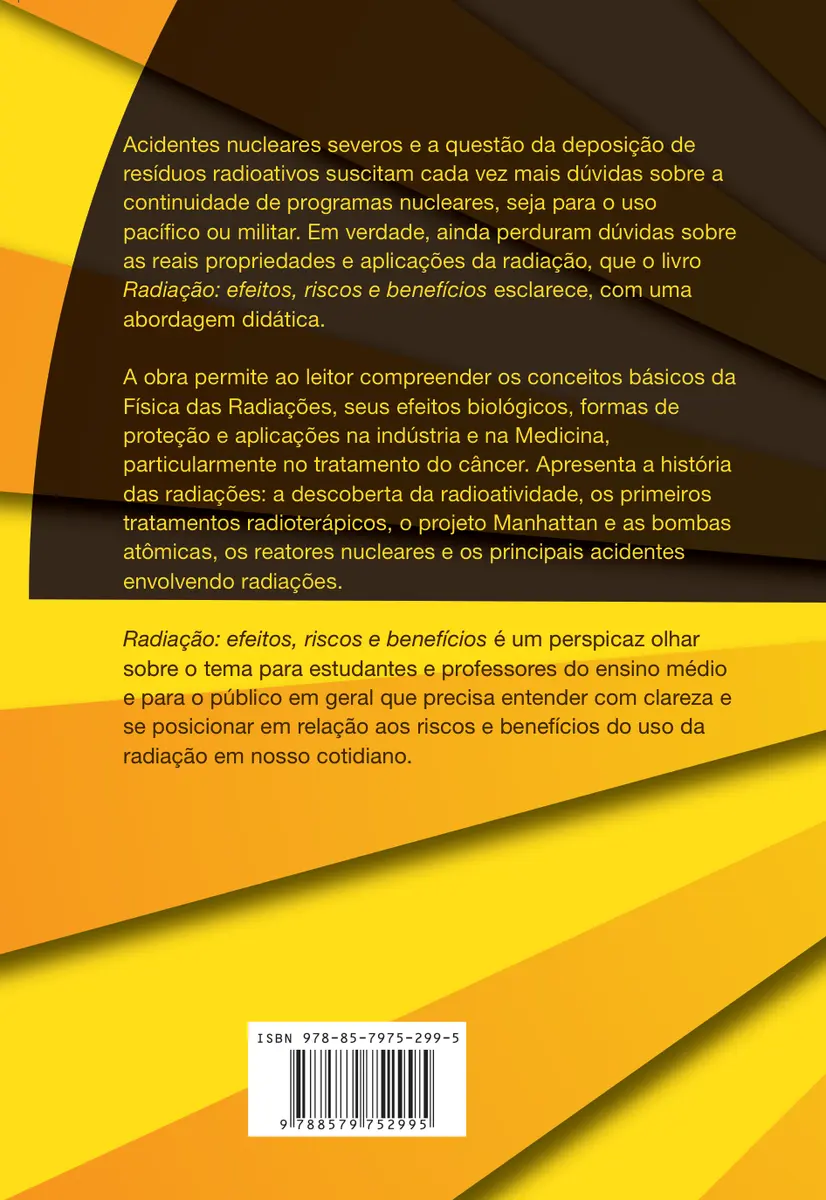 A obra permite ao leitor compreender os conceitos básicos da Física das radiações, seus efeitos biológicos, formas de proteção e suas aplicações na indústria e na Medicina, particularmente no tratamento do câncer. Apresenta a história das radiações: a descoberta da radioatividade, os primeiros tratamentos radioterápicos, o projeto Manhattan e as bombas atômicas, os reatores nucleares e os principais acidentes envolvendo radiações. Radiação: efeitos, riscos e benefícios é um perspicaz olhar sobre o tema para estudantes e professores do ensino médio e ao público em geral que precisa entender com clareza e se posicionar em relação aos riscos e benefícios do uso da radiação em nosso cotidiano.
