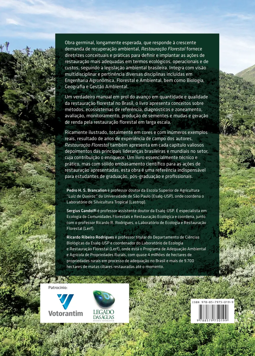 Obra germinal, longamente esperada, que responde à crescente demanda de recuperação ambiental, Restauração Florestal fornece diretrizes conceituais e práticas para definir e implantar as ações de restauração mais adequadas em termos ecológicos, operacionais e de custos. Além de monitorar e avaliar os resultados obtidos, seguindo a legislação ambiental mais recente, alia com visão multidisciplinar e pertinência conceitos da Ecologia, Botânica, Silvicultura, Ciências dos Solos, Economia e Ciências Sociais.