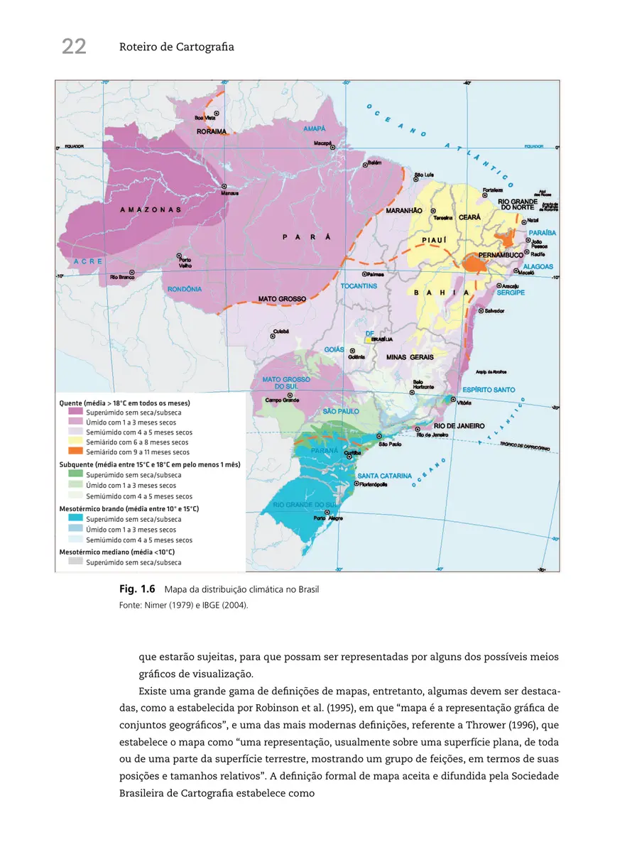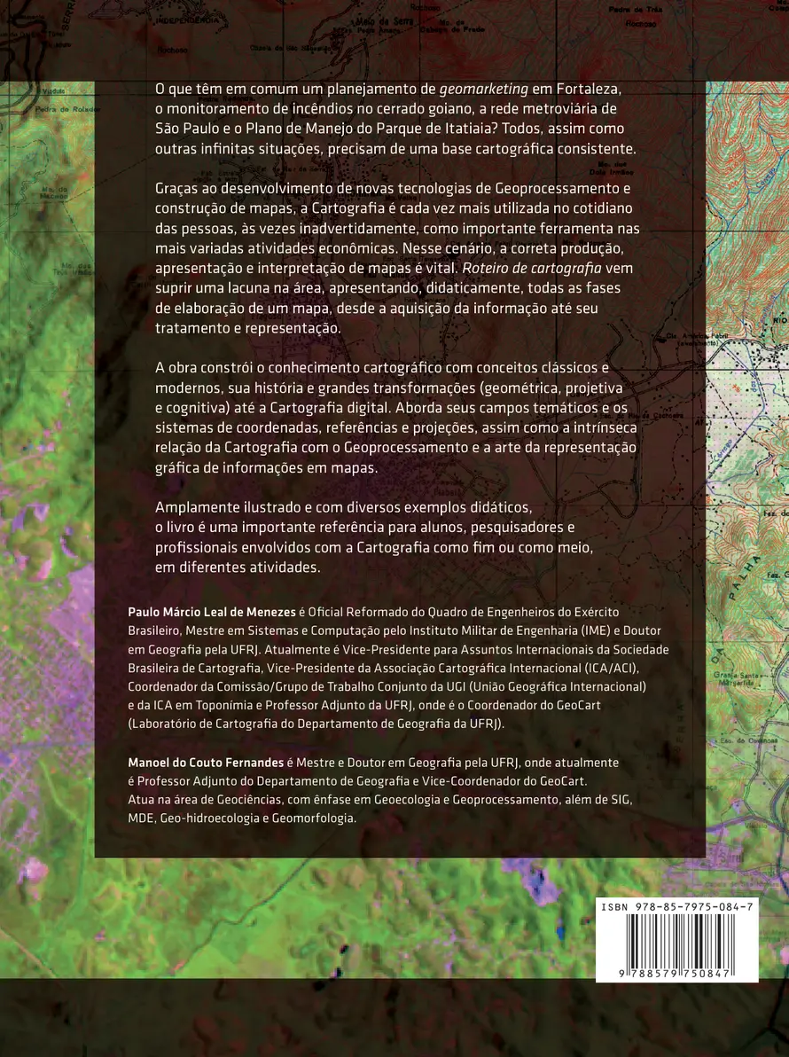 A obra constrói o conhecimento cartográfico com conceitos clássicos e modernos, sua história e grandes transformações (geométrica, projetiva e cognitiva) até a Cartografia digital. Aborda seus campos temáticos e os sistemas de coordenadas, referências e projeções, assim como a intrínseca relação da Cartografia com o Geoprocessamento e a arte da representação gráfica de informações em mapas.