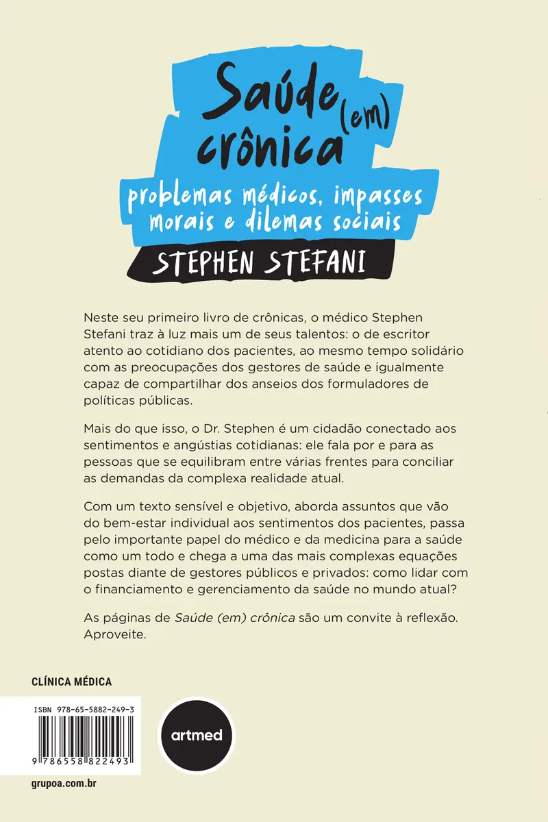 STEFANI, S. (org.). Saúde (em) crônica: problemas médicos, impasses morais e dilemas sociais. Porto Alegre: Artmed, 2025.