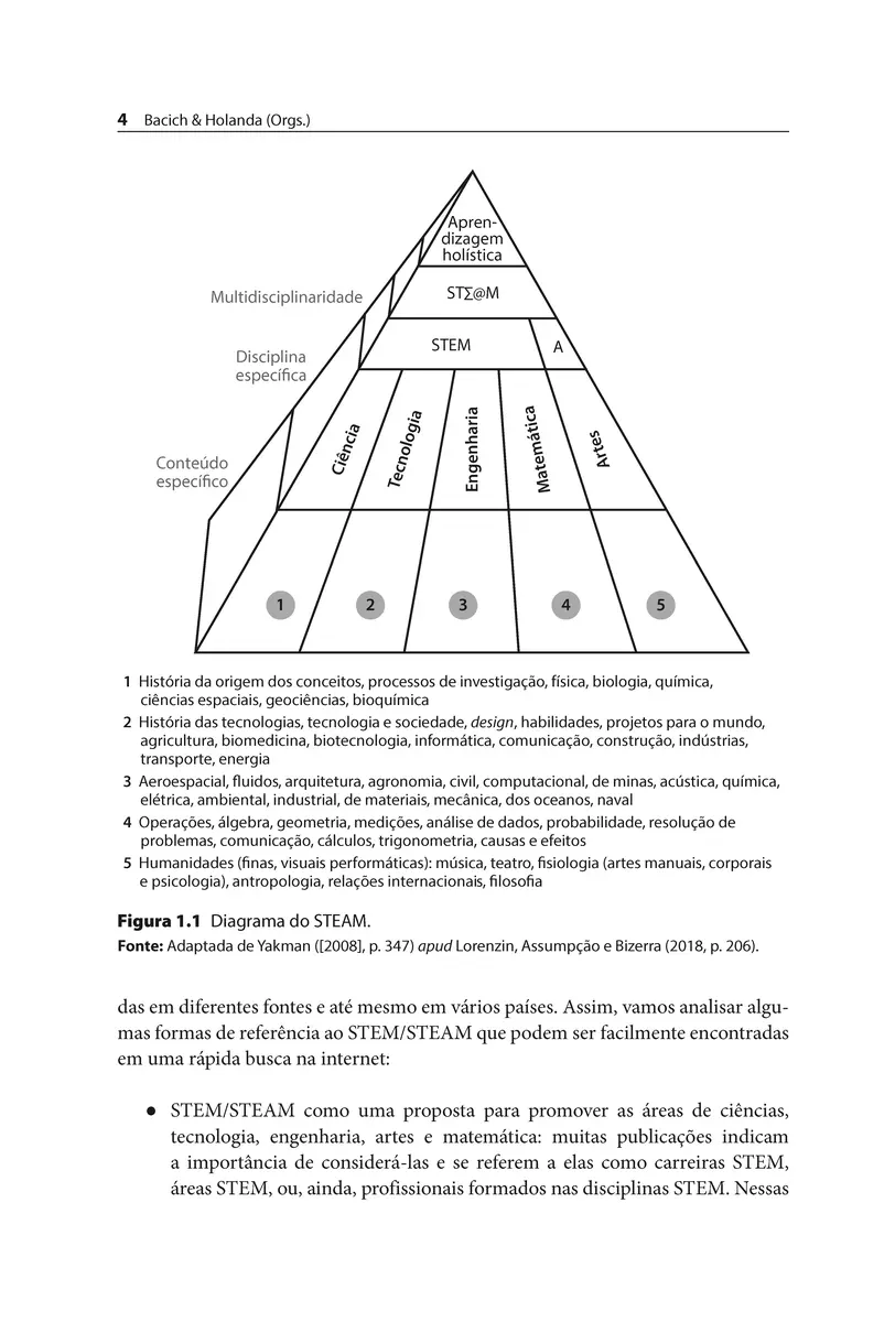 BACICH, L.; HOLANDA, L. (org.). STEAM em sala de aula: a aprendizagem baseada em projetos integrando conhecimentos na educação básica. Porto Alegre: Penso, 2020. 226 p.