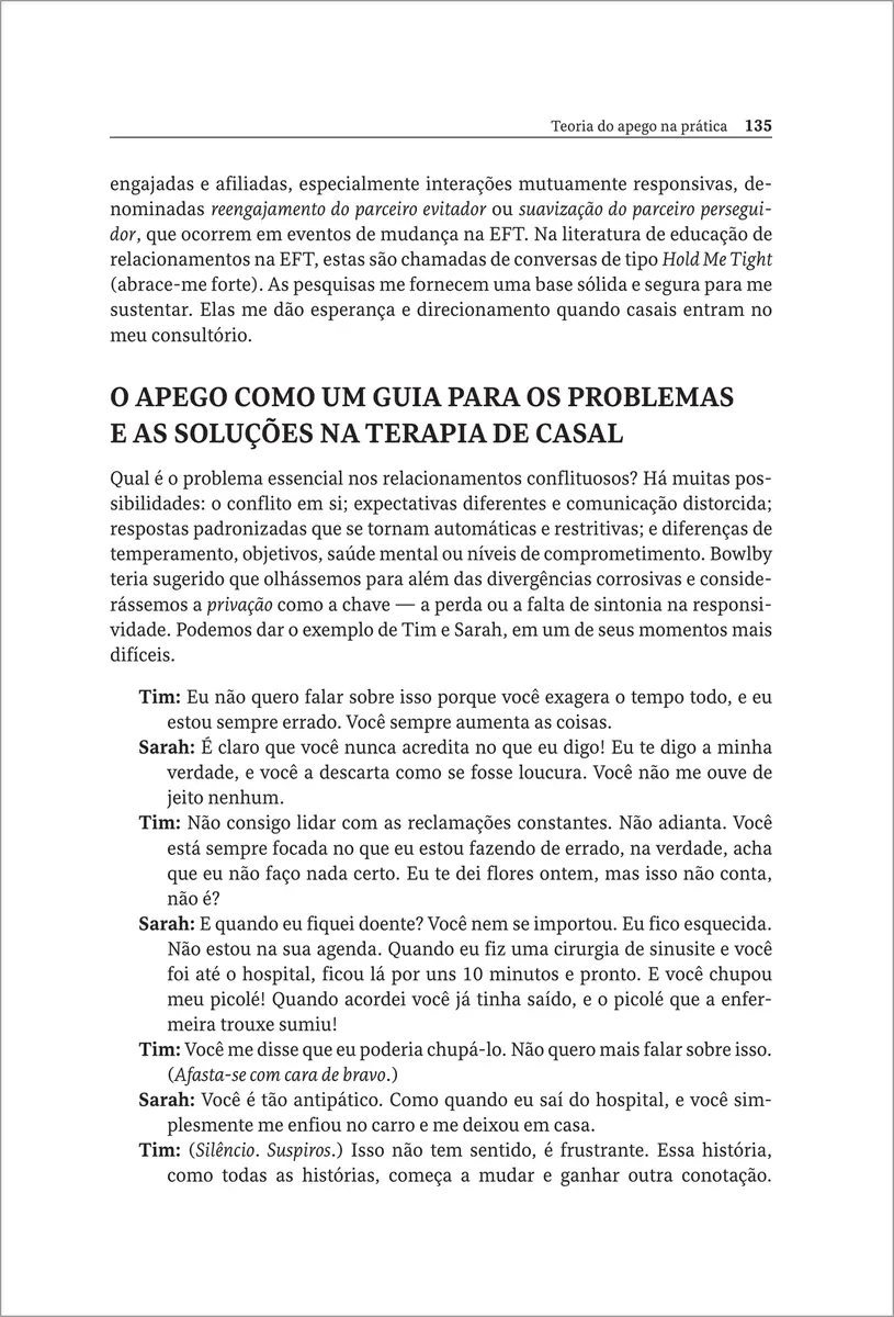 Neste livro, Susan M. Johnson, principal desenvolvedora da terapia focada nas emoções (EFT) voltada para casais, combina seu profundo conhecimento sobre a teoria do apego e sua ampla experiência clínica e de ensino para demonstrar a melhor forma de conceituar e conduzir terapias bem-sucedidas e transformadoras com indivíduos, casais e famílias.