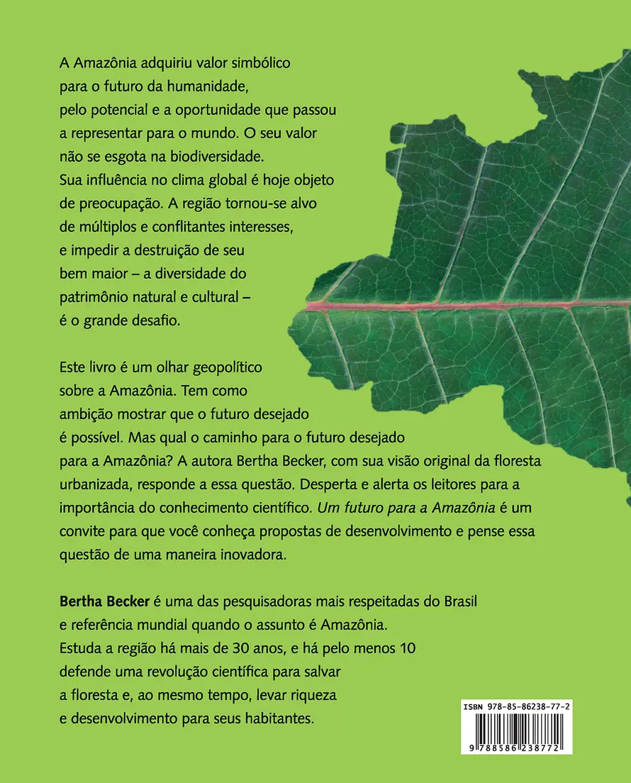 Com um olhar geopolítico sobre a Amazônia, este livro tem como ambição mostrar que o futuro desejado é possível. Mas qual o caminho para o futuro desejado para a Amazônia? A autora Bertha Becker, com sua visão original da floresta urbanizada, responde a essa questão. Desperta e alerta os leitores para a importância do conhecimento científico. Um Futuro para a Amazônia é um convite para que você conheça propostas inovadoras de desenvolvimento. Uma questão que diz respeito a todos nós.