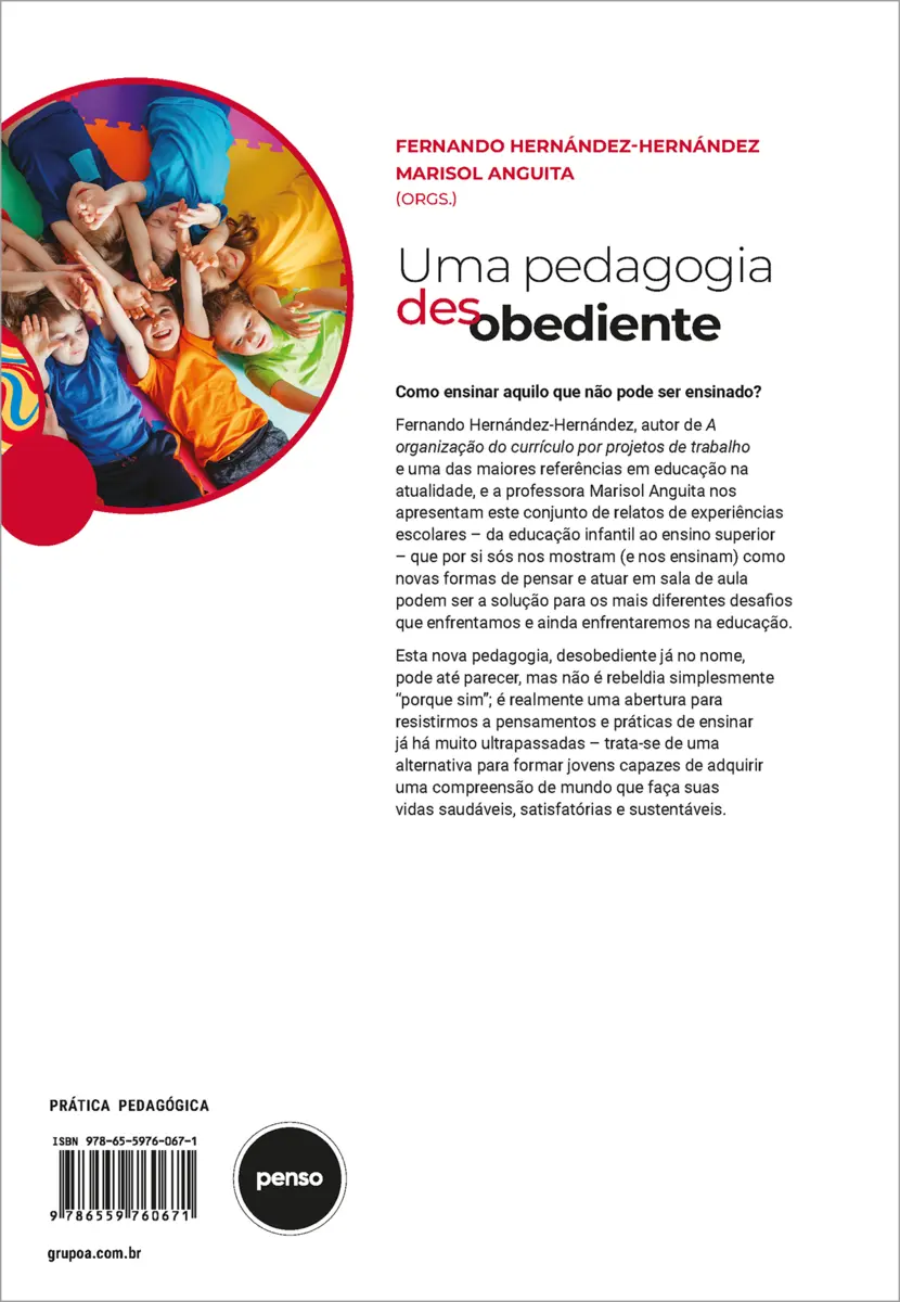 Como ensinar aquilo que não pode ser ensinado? Fernando Hernández-Hernández, autor de A organização do currículo por projetos de trabalho e uma das maiores referências em educação na atualidade, e a professora Marisol Anguita nos apresentam este conjunto de relatos de experiências escolares – da educação infantil ao ensino superior – que por si sós nos mostram (e nos ensinam) como novas formas de pensar e atuar em sala de aula podem ser a solução para os mais diferentes desafios que enfrentamos e ainda enfrentaremos na educação.Esta nova pedagogia, desobediente já no nome, é uma verdadeira abertura para resistirmos a pensamentos e práticas de ensinar já há muito ultrapassadas – trata-se de uma alternativa para formar jovens capazes de adquirir uma compreensão de mundo que faça suas vidas saudáveis, satisfatórias e sustentáveis.